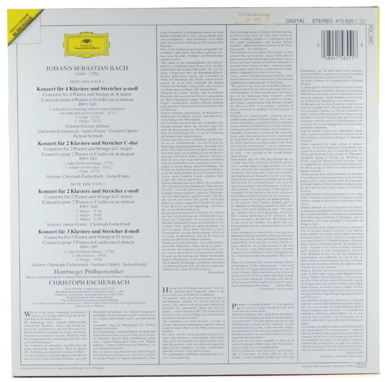 Bach - Eschenbach, Frantz, Oppitz, Schmidt, Hamburger Philharmoniker - Klavierkonzerte BWV 1060, 1061, 1063, 1065