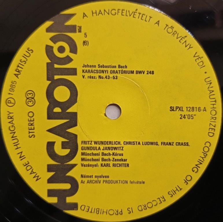 Bach - Gundula Janowitz, Christa Ludwig, Fritz Wunderlich, Franz Crass, Maurice André, Karl Richter – Weihnachts-Oratorium (Karácsonyi Oratórium)