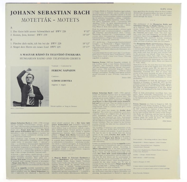 Bach - Hungarian Radio And Television Chorus, Ferenc Sapszon, Gabor Lehotka – Four Motets BWV 225, 226, 228, 229