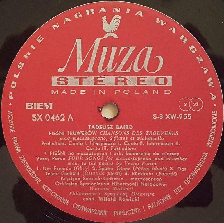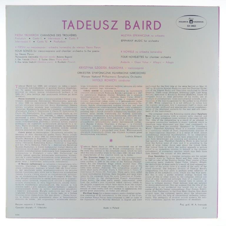 Tadeusz Baird - Krystyna Szostek-Radkowa, Warsaw Philharmonic Orchestra, Witold Rowicki - Epiphany Music / Chansons Des Trouvères / Four Songs / Four Novelettes