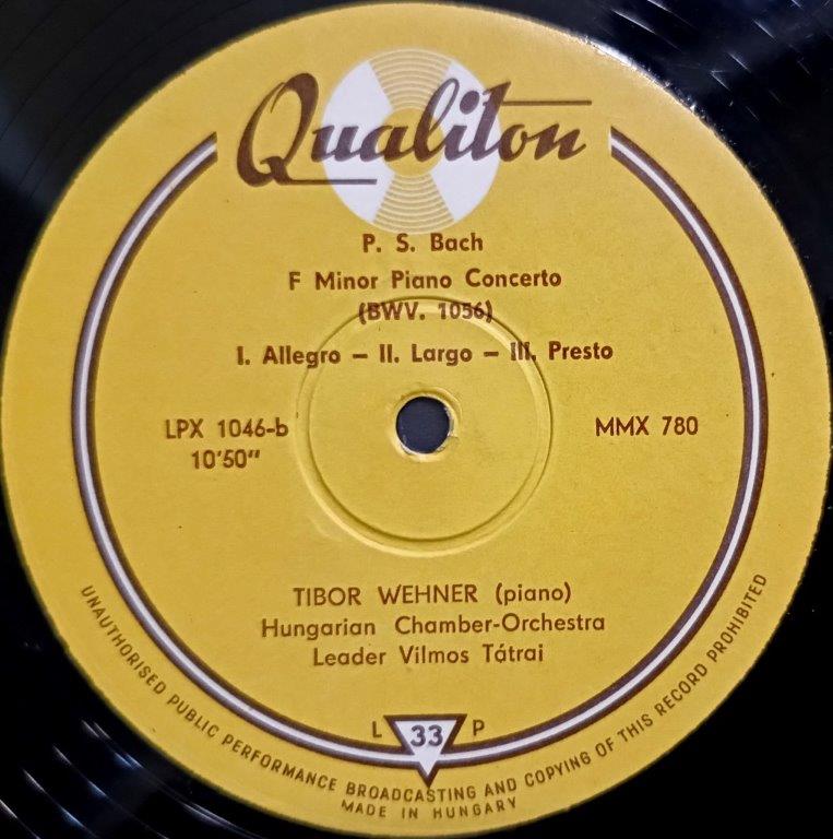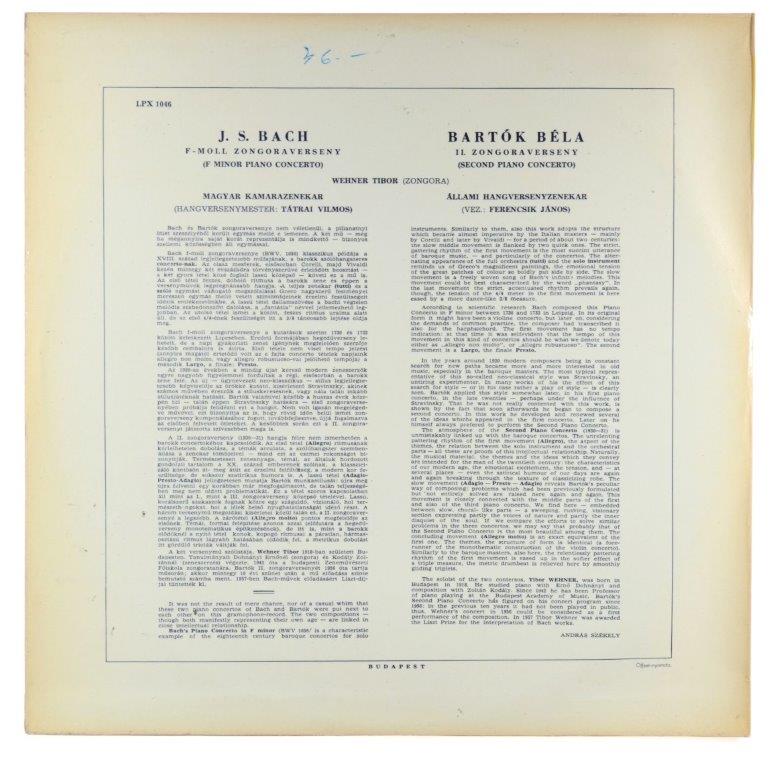 Bartok, Bach - Wehner Tibor, State Concert Orchestra, János Ferencsik, Hungarian Chamber-Orchestra, Leader Vilmos Tatrai - Second Piano Concerto / F. Minor Piano Concerto