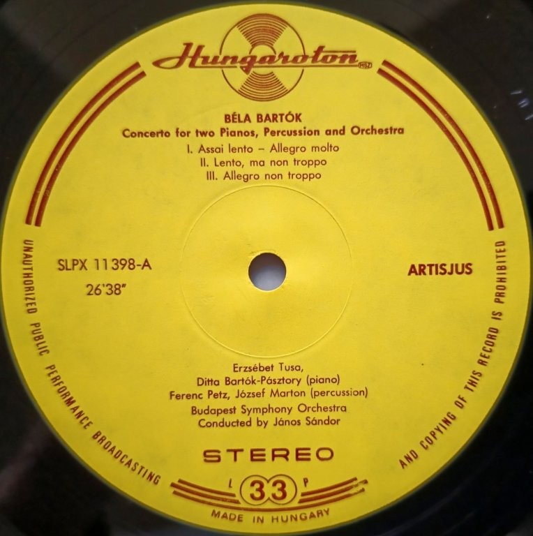 Bartok - Budapest Symphony Orchestra, János Sándor – Suite For Two Pianos, Op. 4 B / Concerto For Two Pianos, Percussion And Orchestra