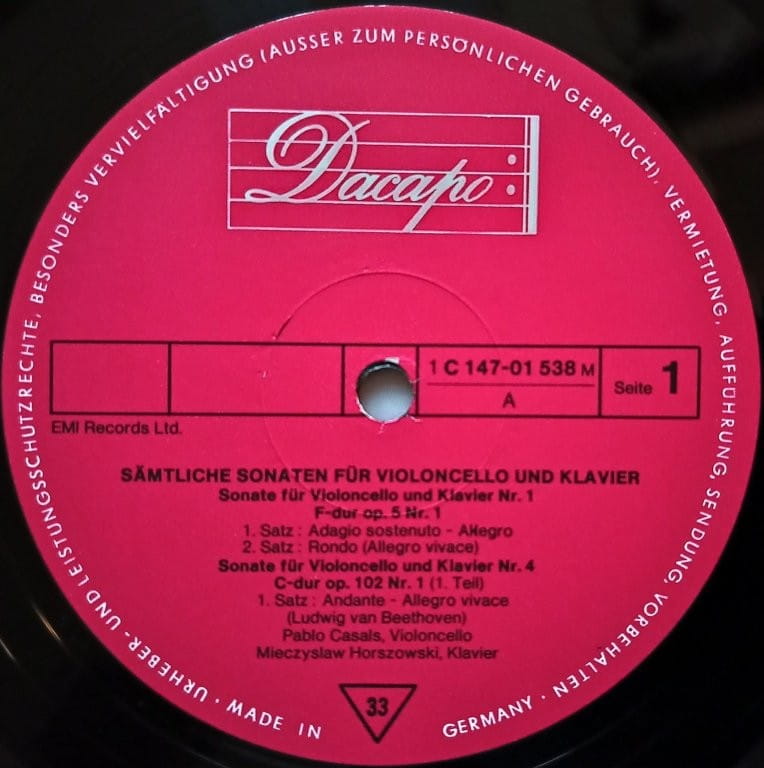 Beethoven - Casals, Cortot, Horszowski, Schulhof - Samtliche Sonaten Fur Violoncello Und Klavier. 2LP