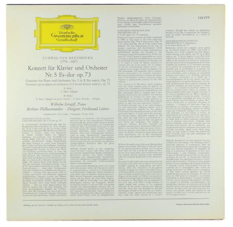 Beethoven - Wilhelm Kempff, Berliner Philharmoniker, Ferdinand Leitner - Klavierkonzert Nr 5 Es-dur