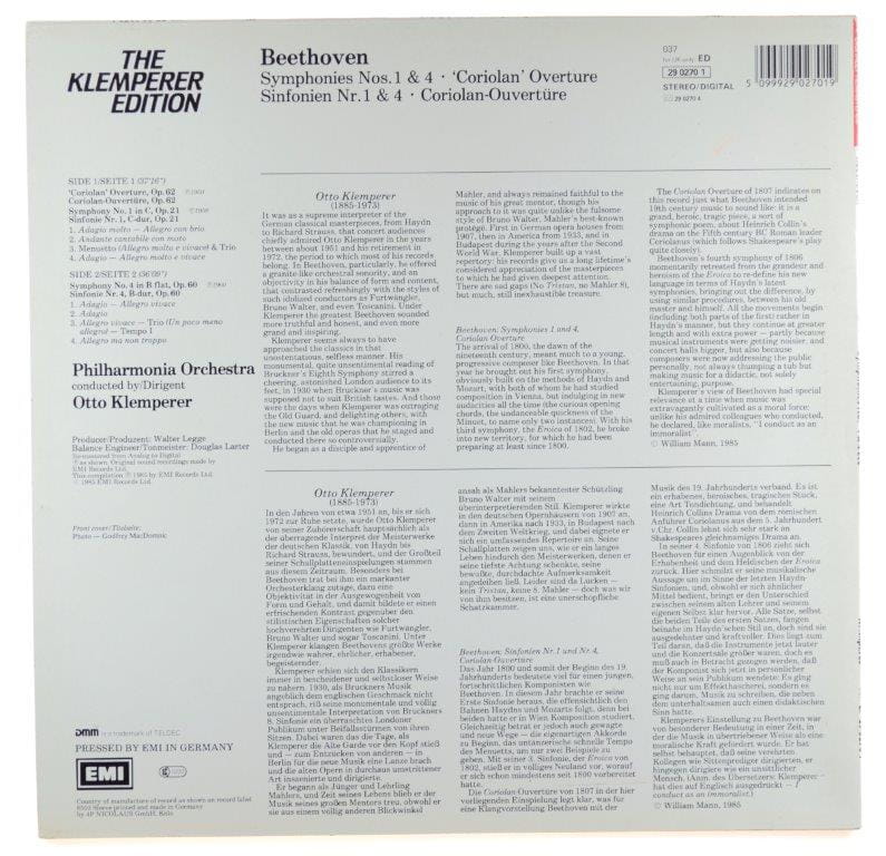 Beethoven - Klemperer, Philharmonia Orchestra - Symphonies Nr 1 & 4 / Coriolan Overture