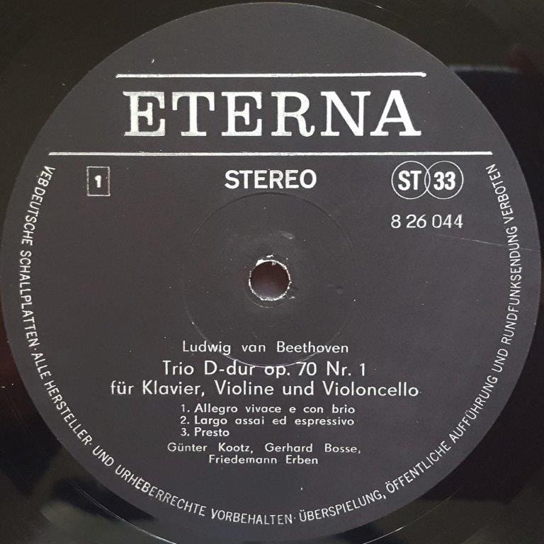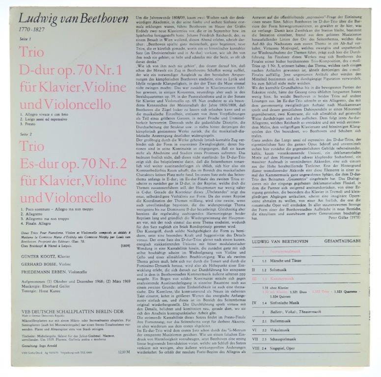 Beethoven - Günter Kootz, Gerhard Bosse, Friedemann Erben - Trios Für Klavier, Violine Und Violoncello D-dur Op. 70 Nr 1 / Es-dur Op. 70 Nr 2