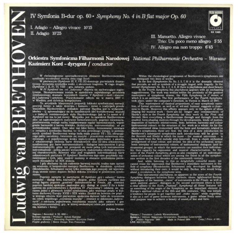 Ludwig van Beethoven, Orkiestra Symfoniczna Filharmonii Narodowej, Kazimierz Kord – Symphony No. 4 In B Flat Maor Op. 60