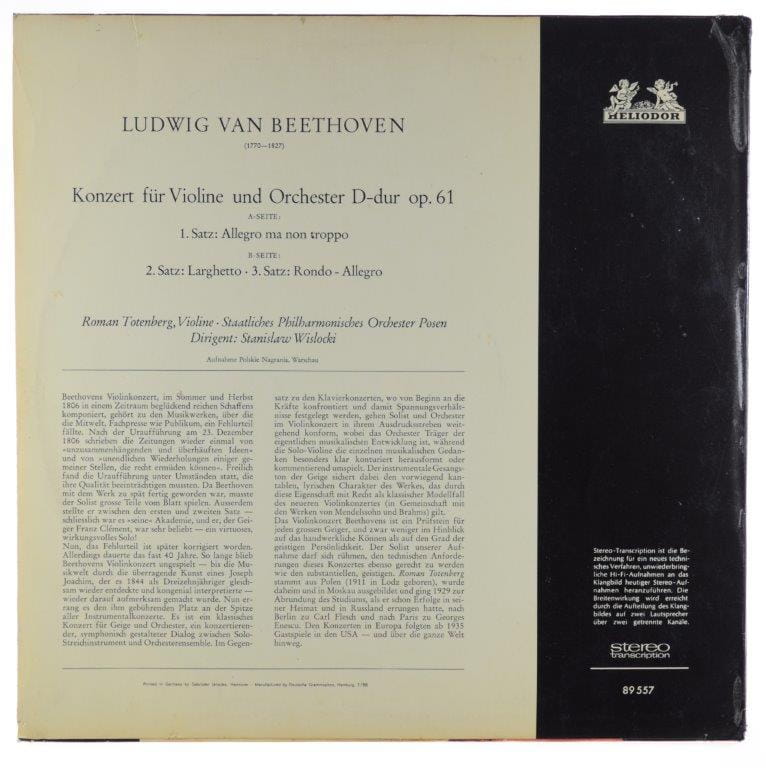 Beethoven - Roman Totenberg, Philharmonie Posen, Stanislaw Wislocki - Konzert Für Violine Und Orchester D-dur Op. 61