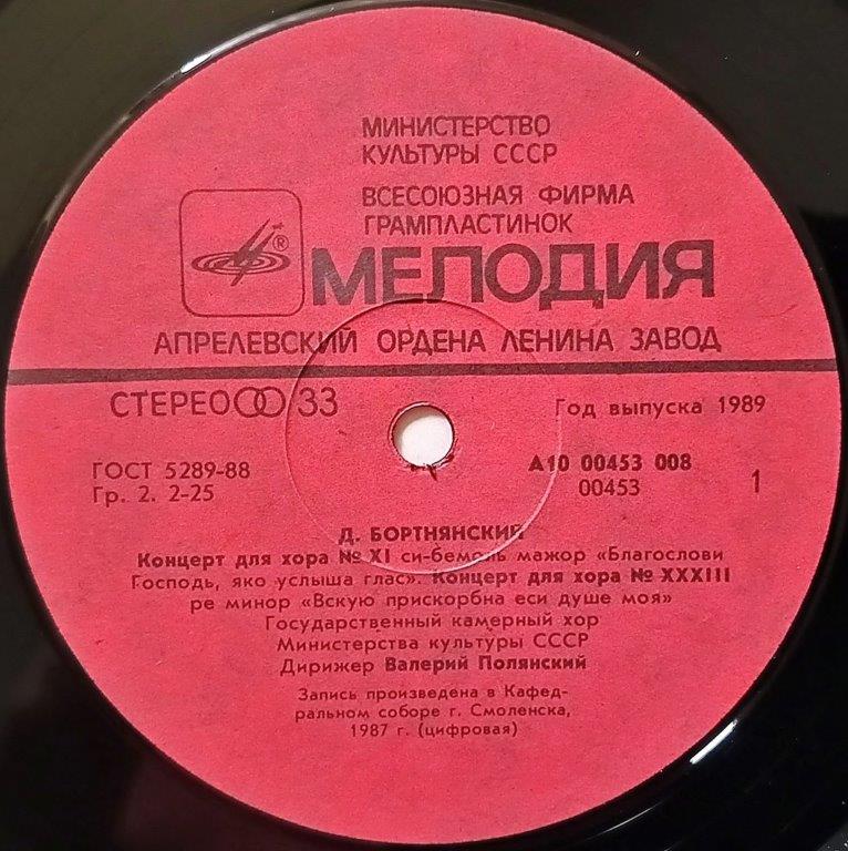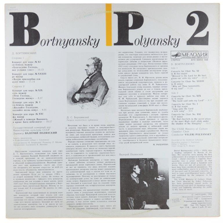 D. Bortnyansky - The USSR Ministry Of Culture Chamber Choir, Valeri Polyansky - Concertos For Choir Nr XI, XXXIII, I, XXI