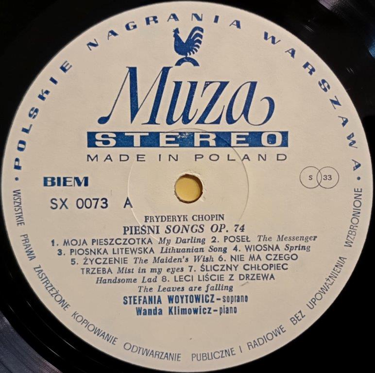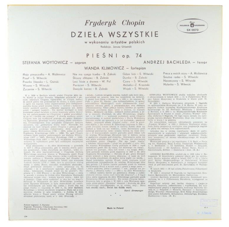 Chopin - Wanda Klimowicz, Stefania Woytowicz, Andrzej Bachleda - Pieśni Op. 74