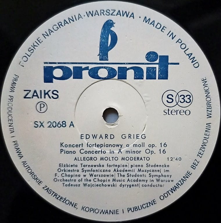 Elżbieta Tarnawska, Edward Grieg – Koncert Fortepianowy A Moll Op. 16 = Piano Concerto In A Minor Op. 16