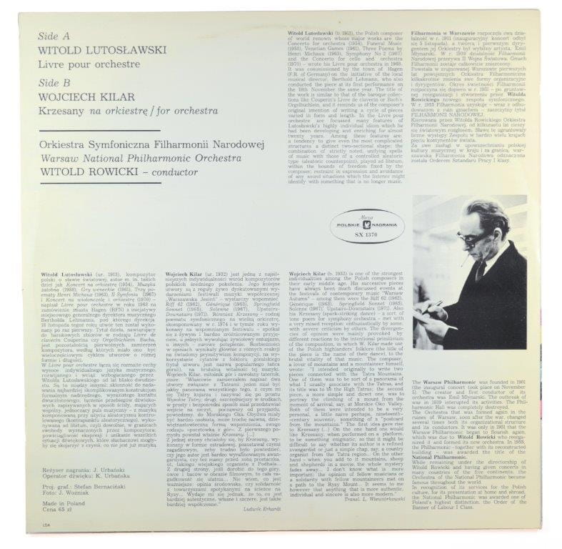 Lutosławski, Kilar - Warsaw National Philharmonic Orchestra, Rowicki – Livre Pour Orchestra / Krzesany