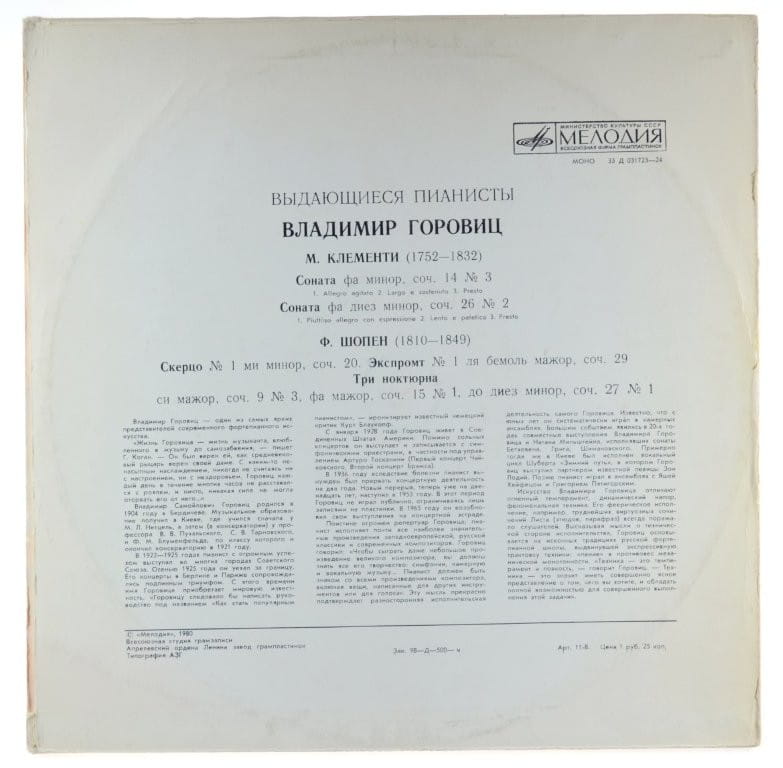 M. Clementi, Chopin - Horowitz - Sonata Nr 3 & Nr 2 / Scherzo Nr 1, 3 Nocturnes