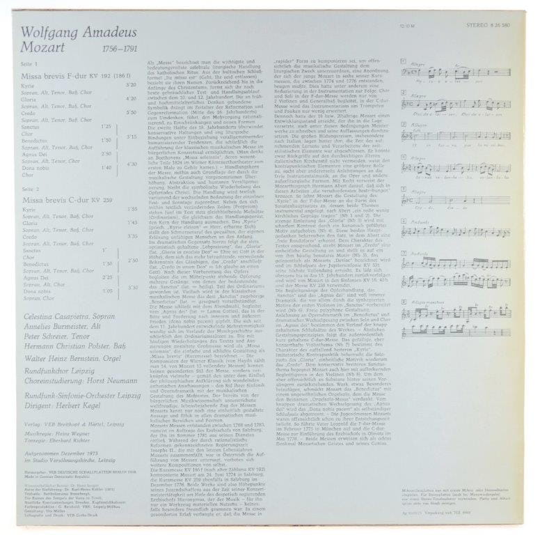 Mozart - Rundfunkchor Leipzig, Rundfunk-Sinfonie-Orchester Leipzig, Herbert Kegel - Missa Brevis F-dur KV 192 / Missa Brevis C-dur KV 259
