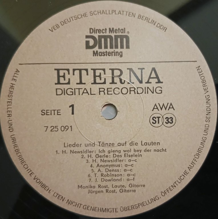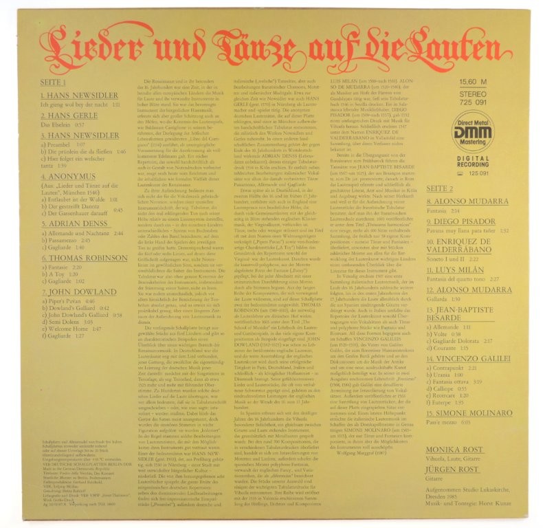 Newsidler, Gerle, Denss, Robinson, Dowland - Monika Rost, Jürgen Rost – Musik Der Renaissance, Lieder Und Tänze Auf Die Lauten