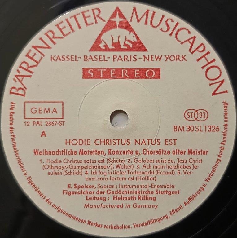 Label: Bärenreiter-Musicaphon - BM30 SL 1326