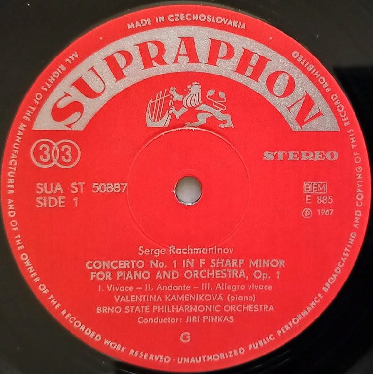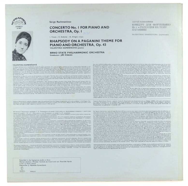 Rachmaninov - Valentina Kameníková, Brno State Philharmonic Orchestra, Jiří Pinkas – Piano Concerto Nr 1 / Rhapsody On A Paganini
