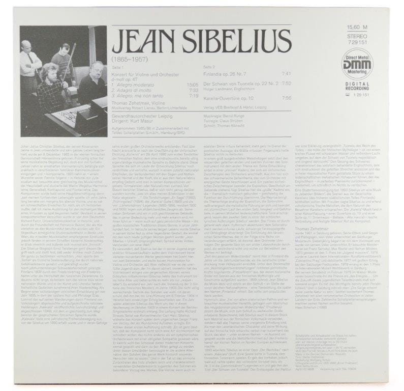 Sibelius - Thomas Zehetmair, Gewandhausorchester Leipzig, Kurt Masur - Violinkonzert D-moll / Finlandia / Karelia / Der Schwan Von Tuonela