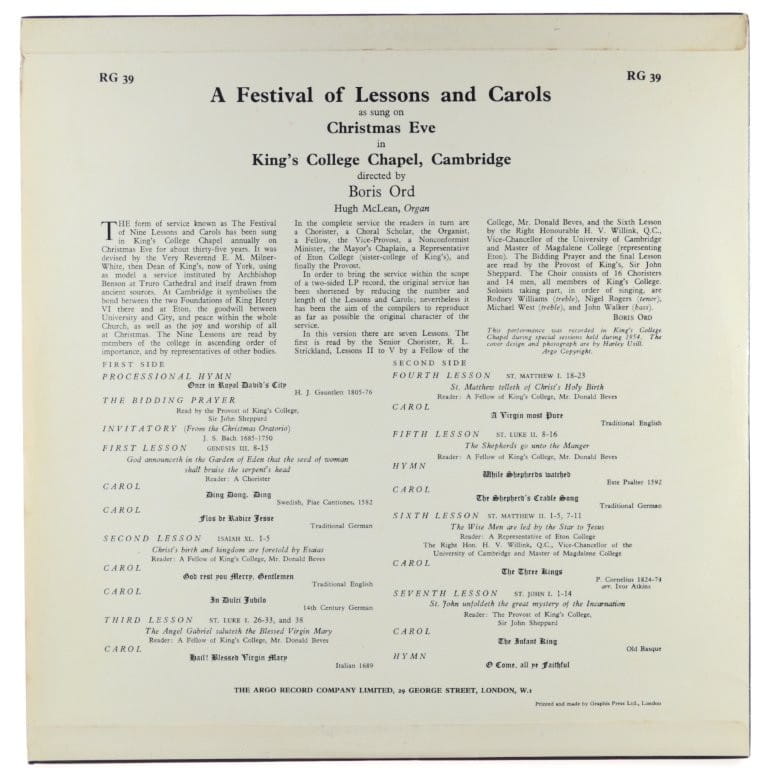 The Choir Of King's College, Boris Ord - A Festival Of Lessons And Carols