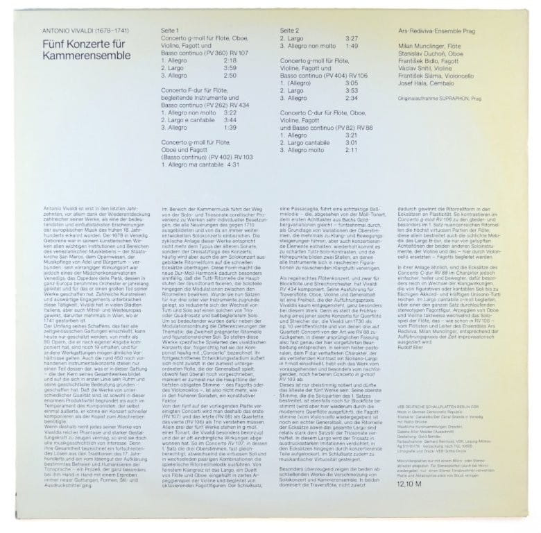 Vivaldi – Ars-Rediviva-Ensemble Prag – Funf Konzerte Fur Kammerensemble
