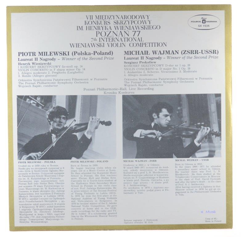 Wieniawski, Prokofiev - Milewski, Wajman - 7th International Wieniawski Violin Competition, Poznań 77 - Violin Concertos