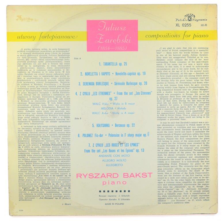 Juliusz Zarębski - Ryszard Bakst - Compositions for piano